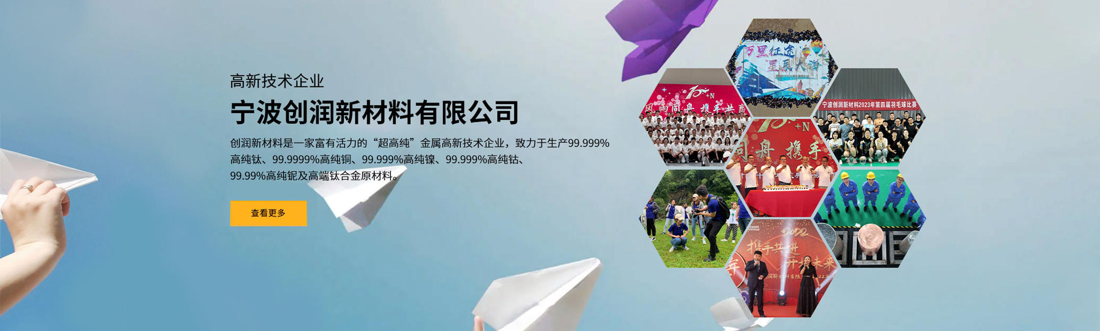 創潤新材料是一家富有活力的“超高純”金屬高新技術企業,致力于生產超高純金屬原材料。產品涉及半導體靶材,航空發動機,生物醫療用高純金屬, 軍工用特殊性能材料等。是國內唯一的超高純鈦金屬產業生產基地,使中國躋身為世界上僅有的三個擁有該技術和產線的國家之一。經過多年的市場開拓與客戶驗證,創潤逐步形成了超高純鈦、銅、鎳、鈷、鈮及高端鈦合金產品體系。
